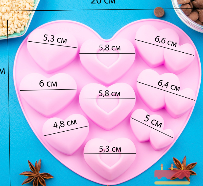 Размеры сердец указаны на фото
